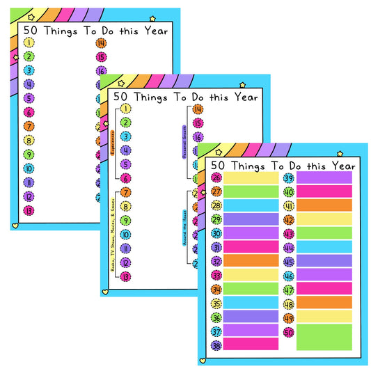 50 Things To Do Worksheet