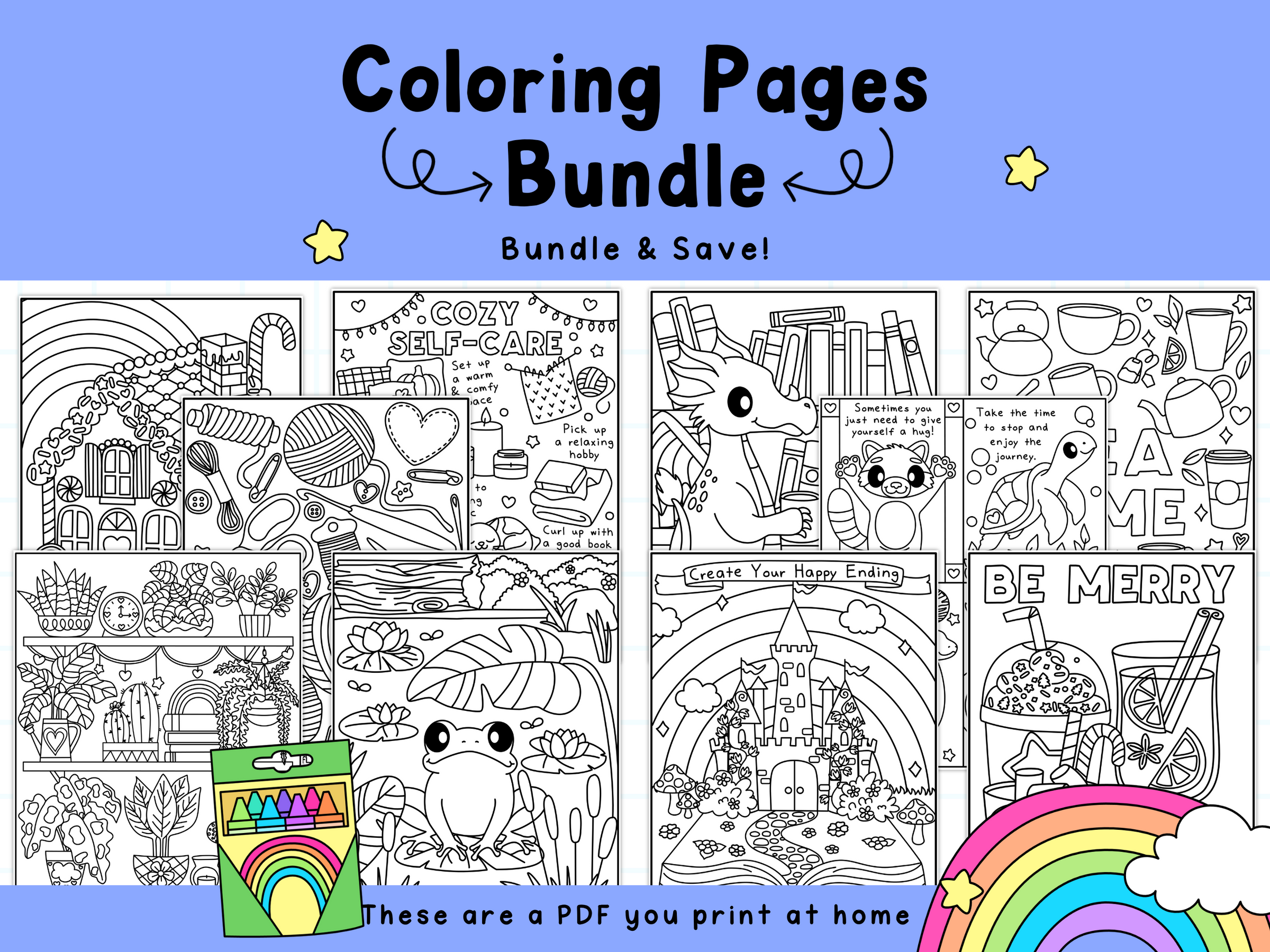 I have coloring pages for you! Here are 106 unique coloring pages created by me! This is a collection of all the coloring pages currently in my shop!