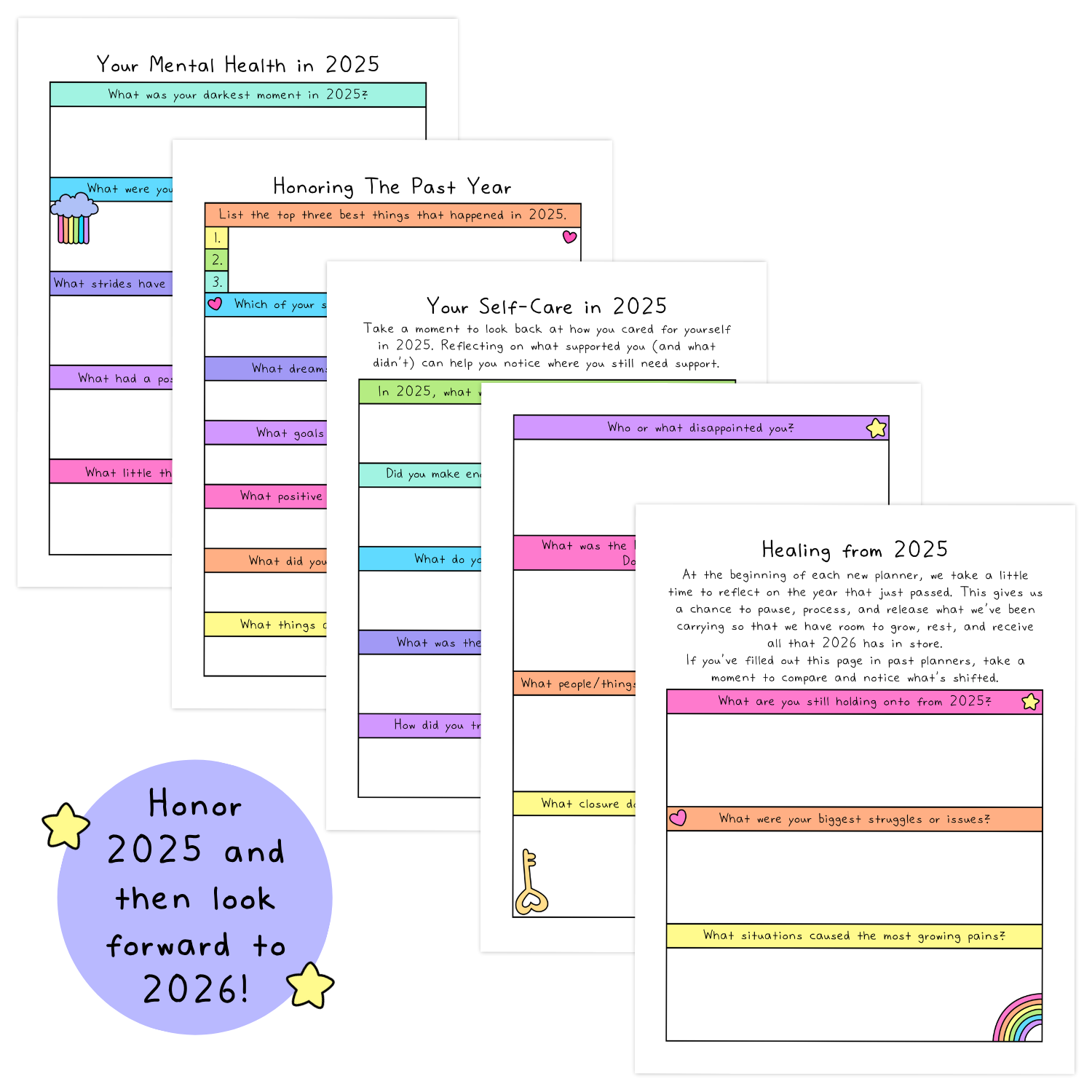 - Look Back At 2025: One of the best parts of this planner is that it lets you see your growth! At the beginning of each Planner, you’ll see a section that’s specifically all about 2025. The questions are the same ones from last year’s planner so it’s an awesome exercise to compare your answers from year to year. This allows you to see where you’re growing and where you’re struggling.