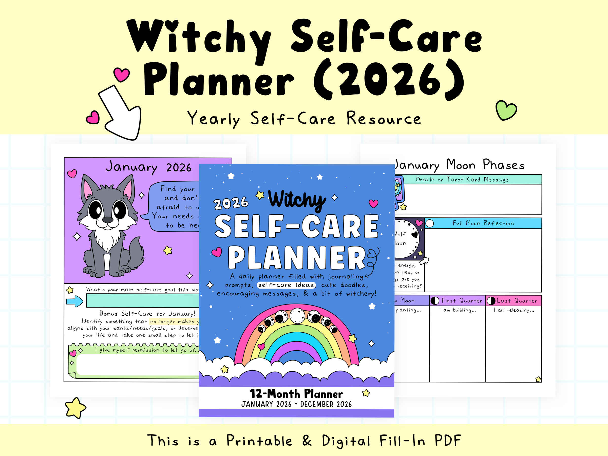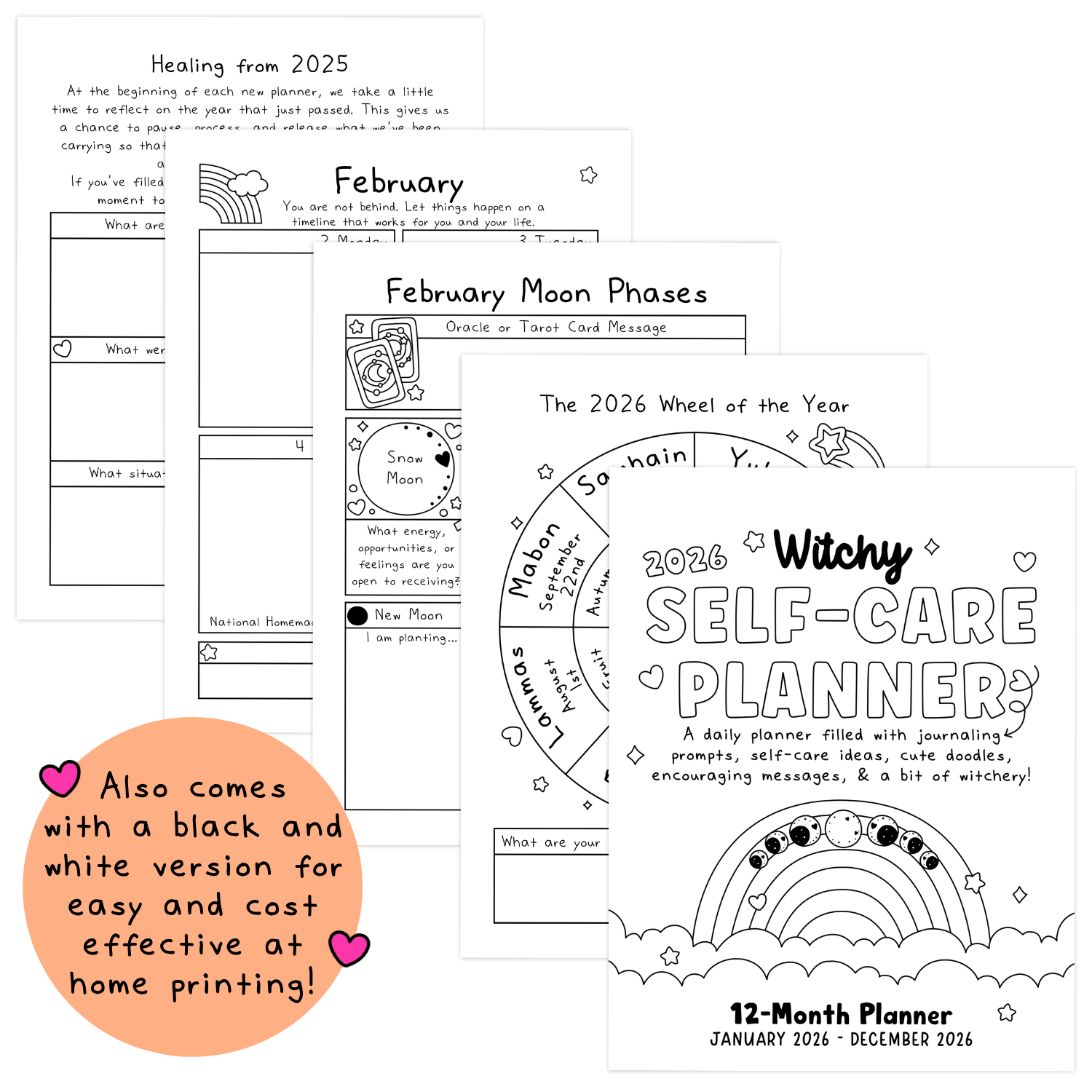 This is the Witchy Edition of the 2026Self-Care Planner, created for those who want to weave a little magic into their self-care. This special edition includes everything in the original planner, plus a few extras to support your spiritual practice.