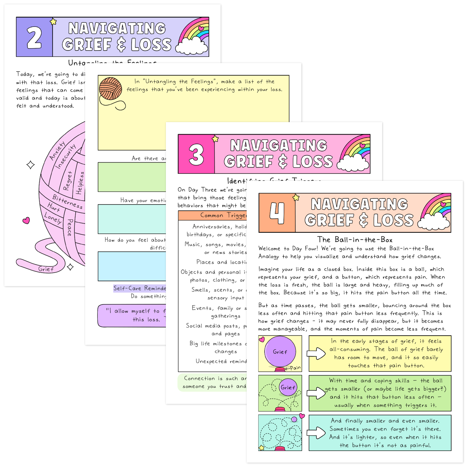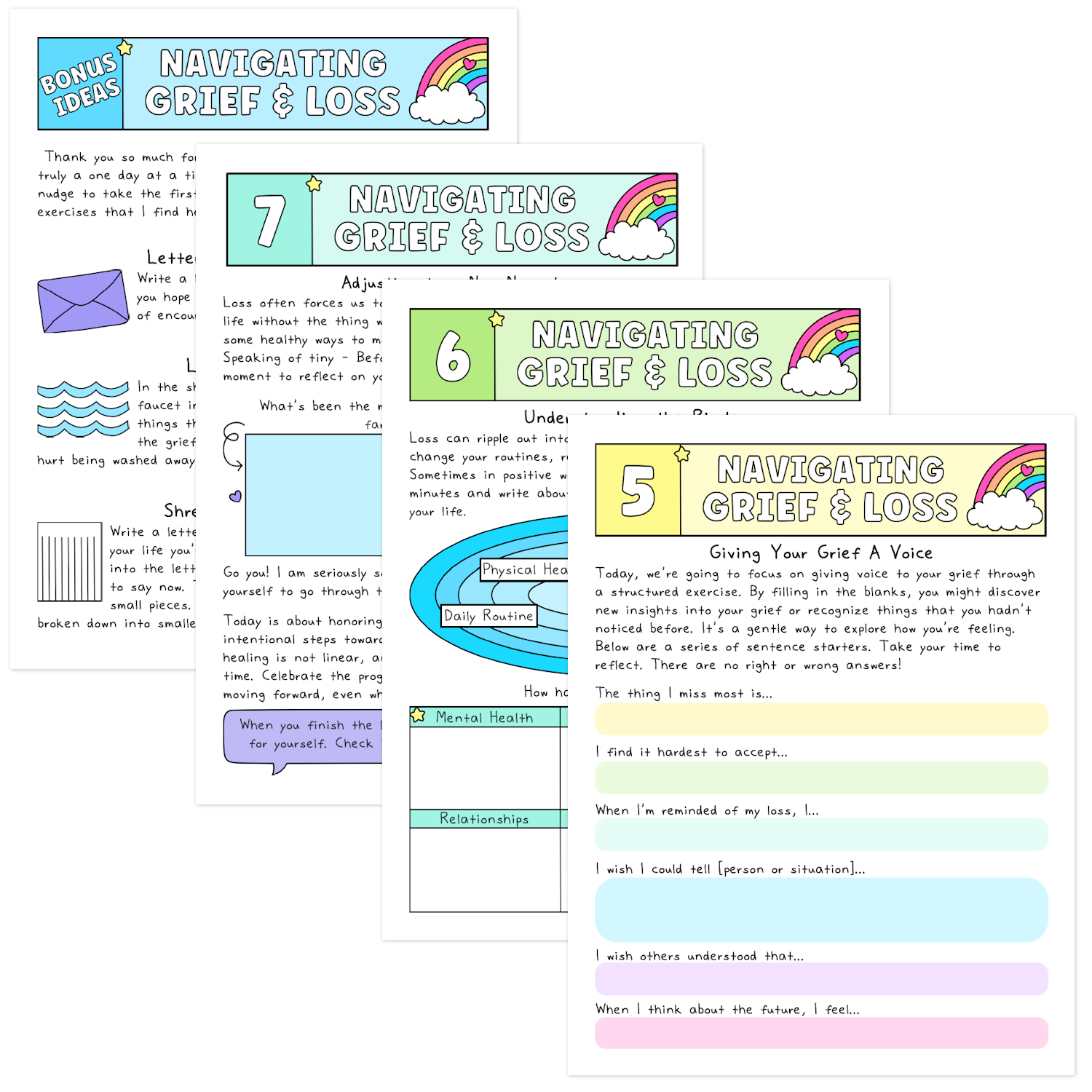 Grieving is hard, and there’s no one-size-fits-all way to process loss. That’s why I created this gentle, supportive 7-day workbook. It’s designed to help you give voice to your feelings, reflect on your experience, and make space for healing.