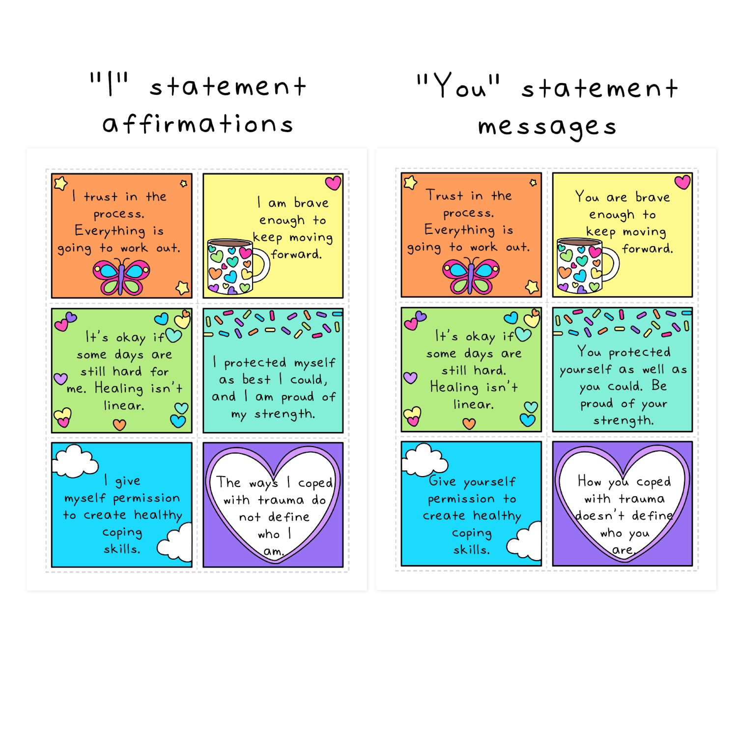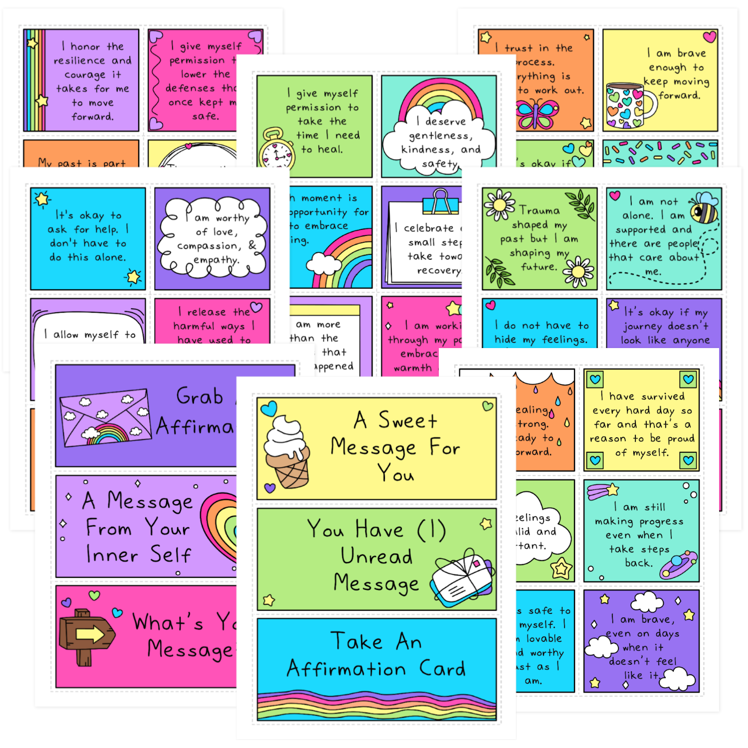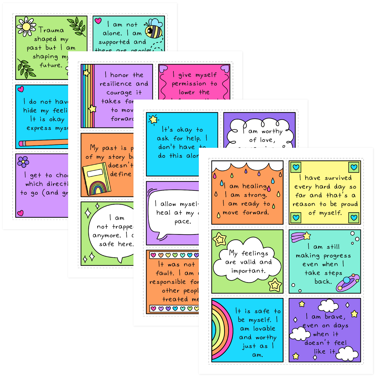 I created these cards that focus on encouraging messages for anyone who's dealing with trauma. I think we all need a little cheerleading when we're feeling down or struggling.