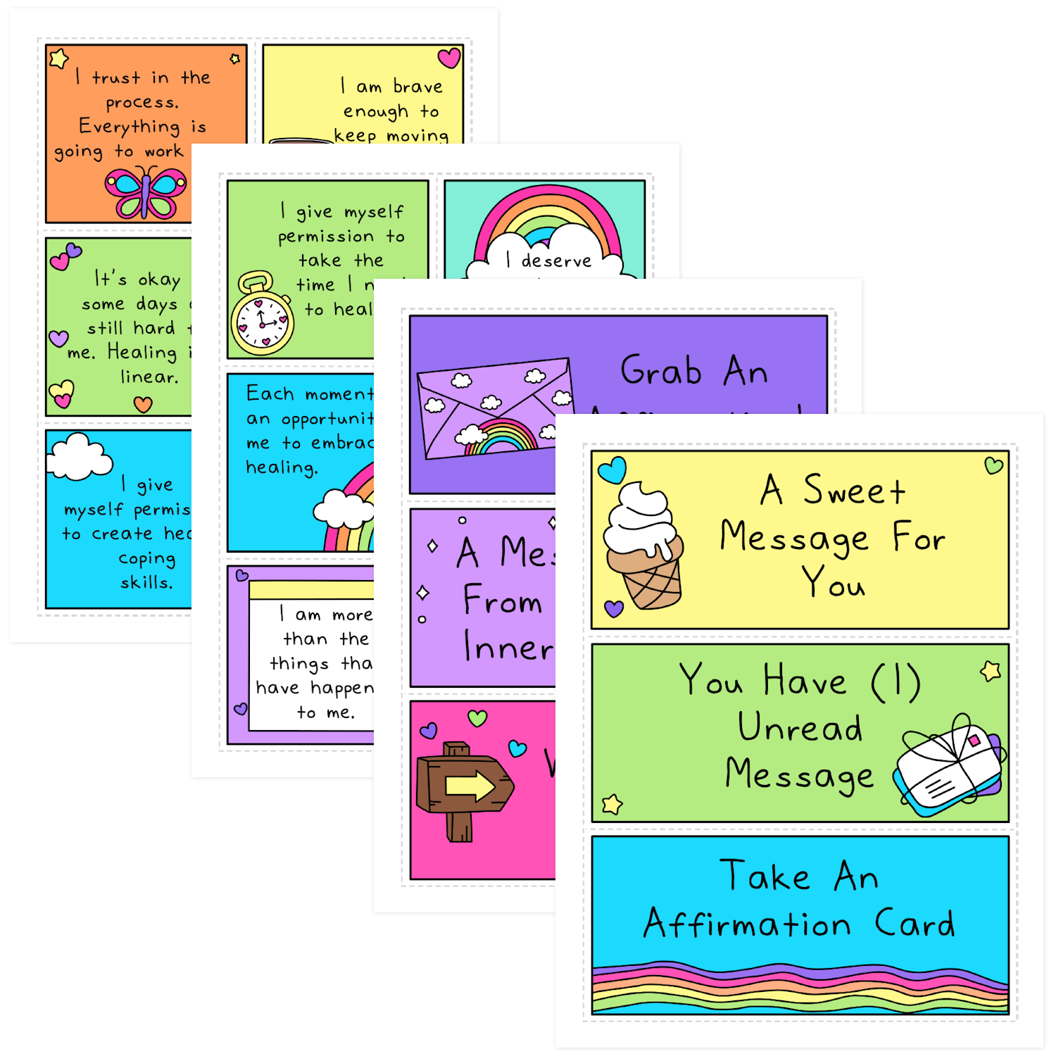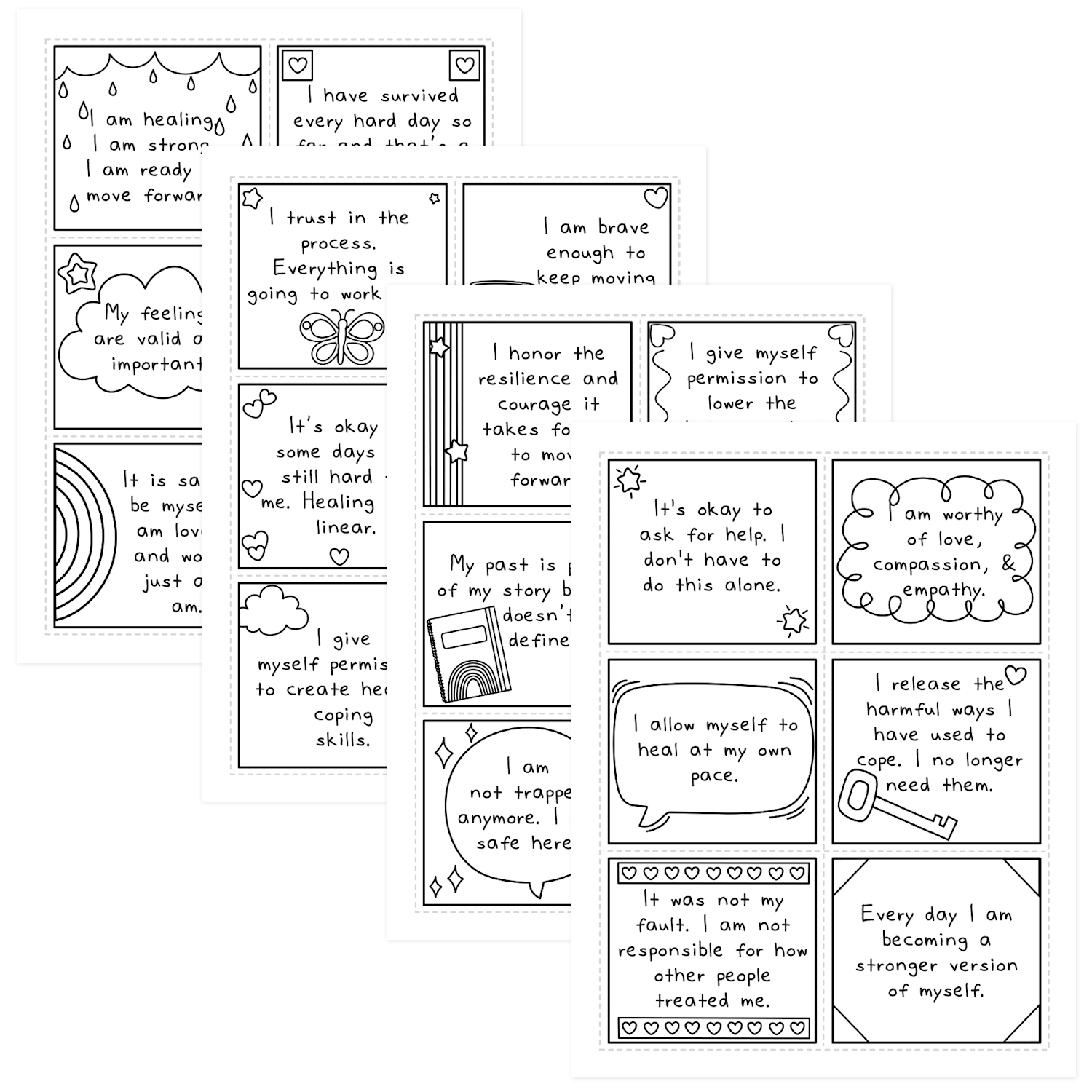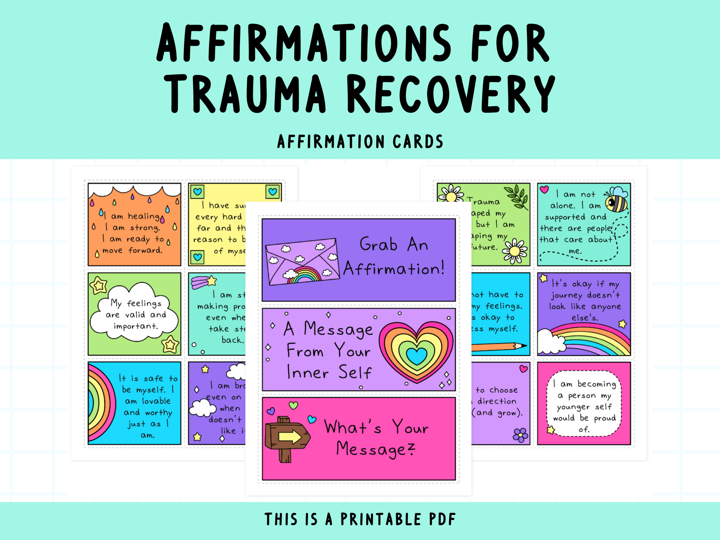 I created these cards that focus on encouraging messages for anyone who's dealing with trauma. I think we all need a little cheerleading when we're feeling down or struggling.
