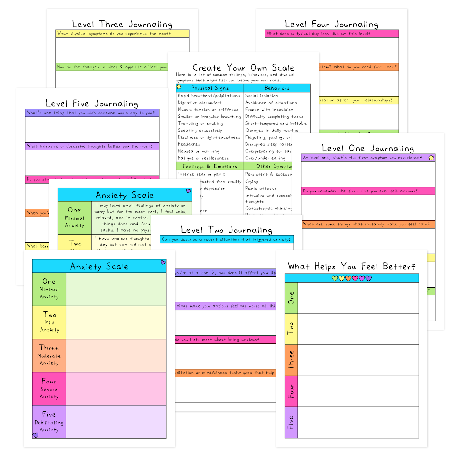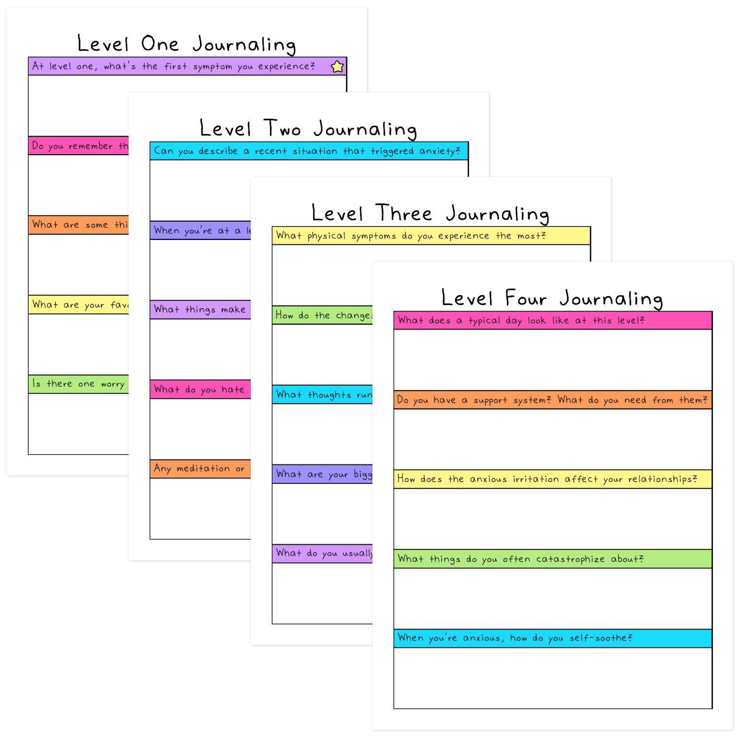 - Journaling pages for each level 1-5, to describe triggers, coping skills, and how each level affects your life and relationships