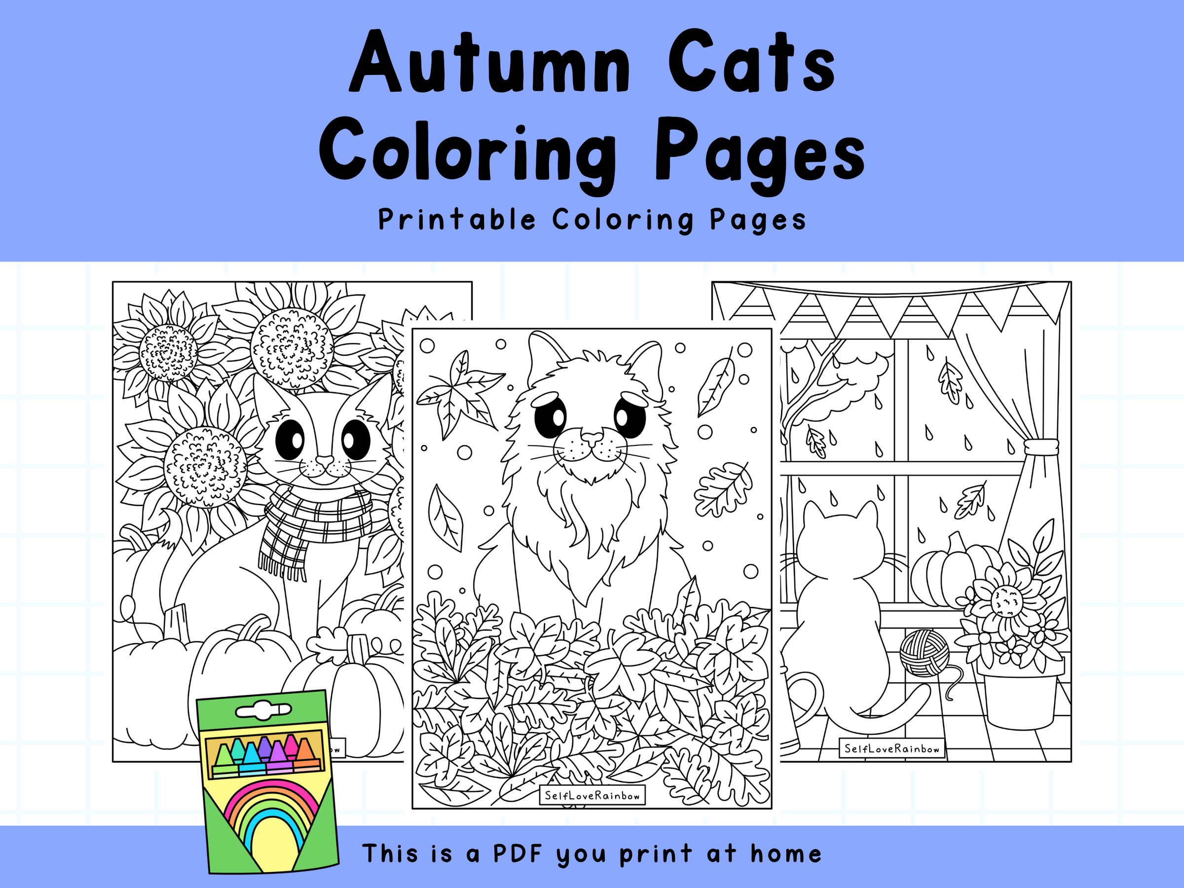 Cozy Autumn Cats Coloring Pages