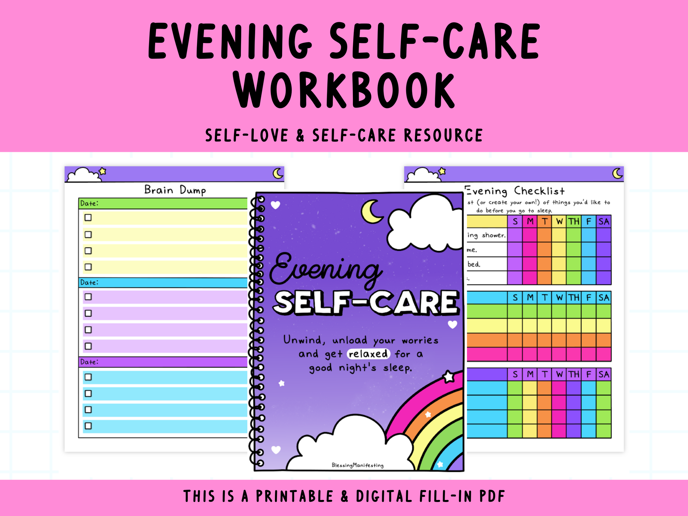 I created this digital workbook for anyone who struggles to make time for self-care in the evening. If you struggle to fall asleep or struggles to have good sleep, I hope this helps! Your evening self-care routine is so important to the quality of sleep you have and your energy level the next day.