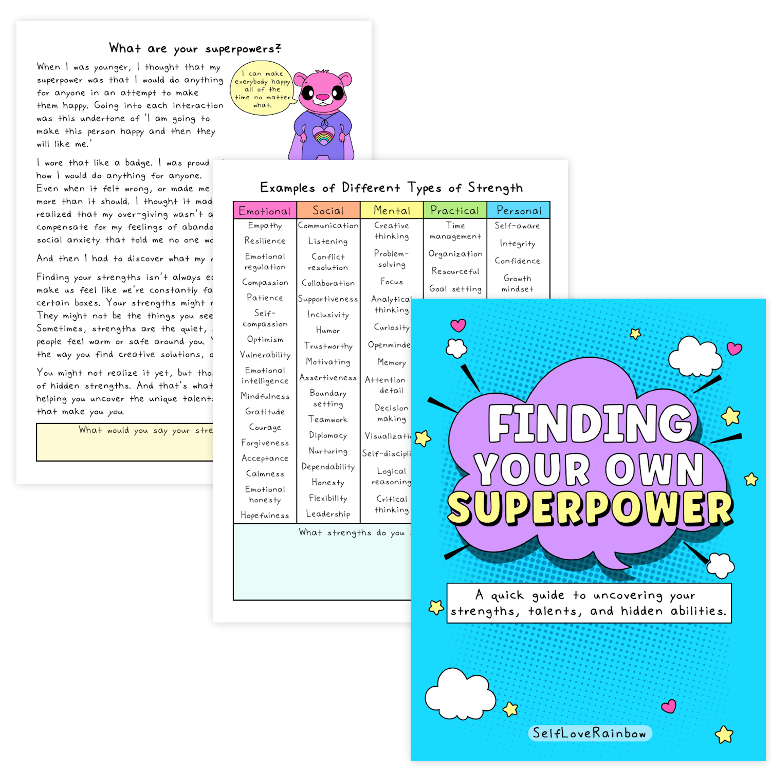 So these worksheets kinda breakdown the concept of strengths into strengths in different areas of your life and also in our different roles (sibling, child, neighbor, employee, partner, pet parent, etc). Some strengths will be across the board but I'm hoping it also pulls out strengths you didn't realize you had!