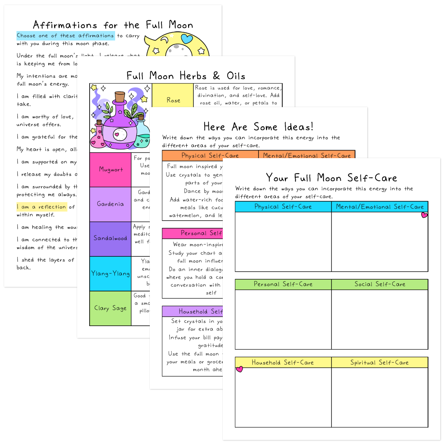 - Full Moon Self-Care Worksheet (write down what kind of self-care you need in your life)