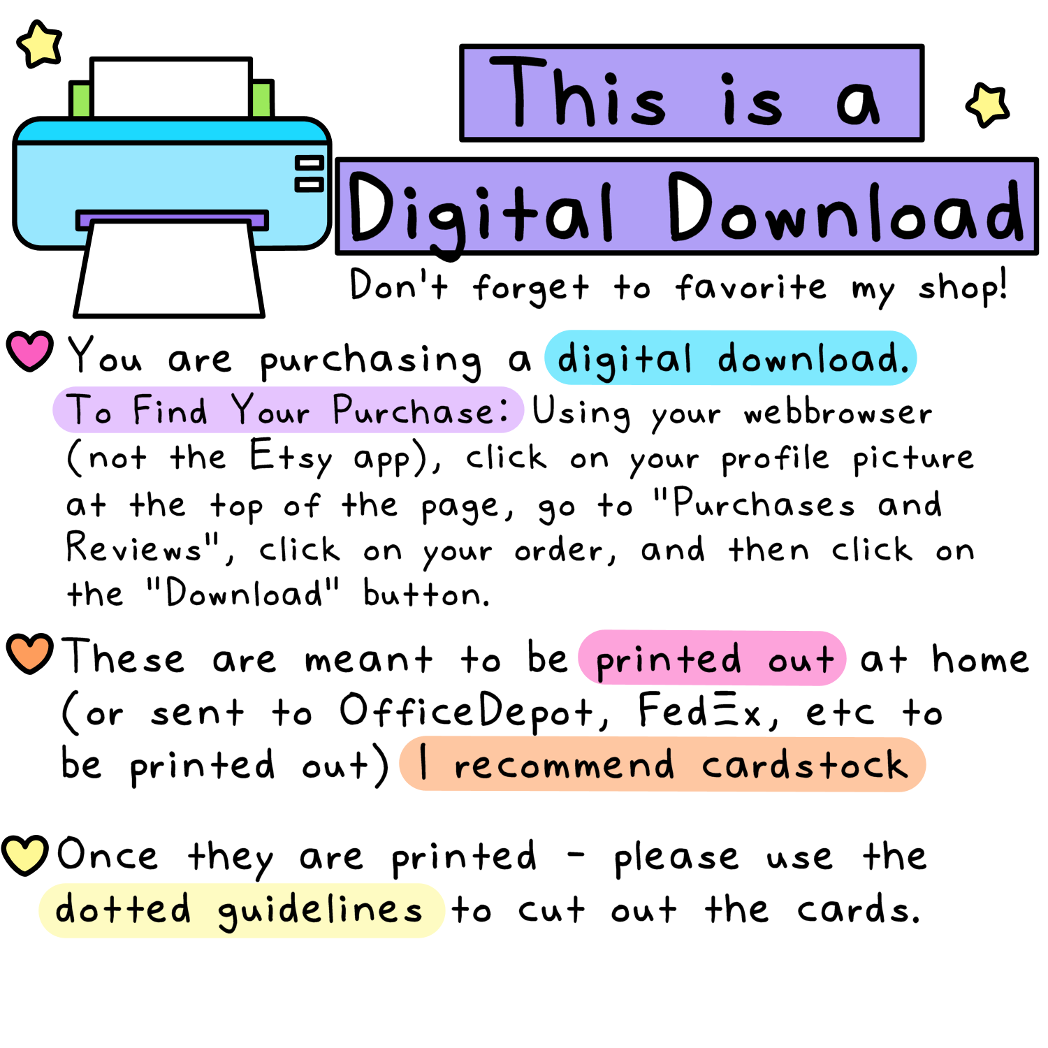 *Printing these at home may result in duller colors than you see on your screen. If this is the case, you can have them printed professionally like at Walgreens for a closer color match.