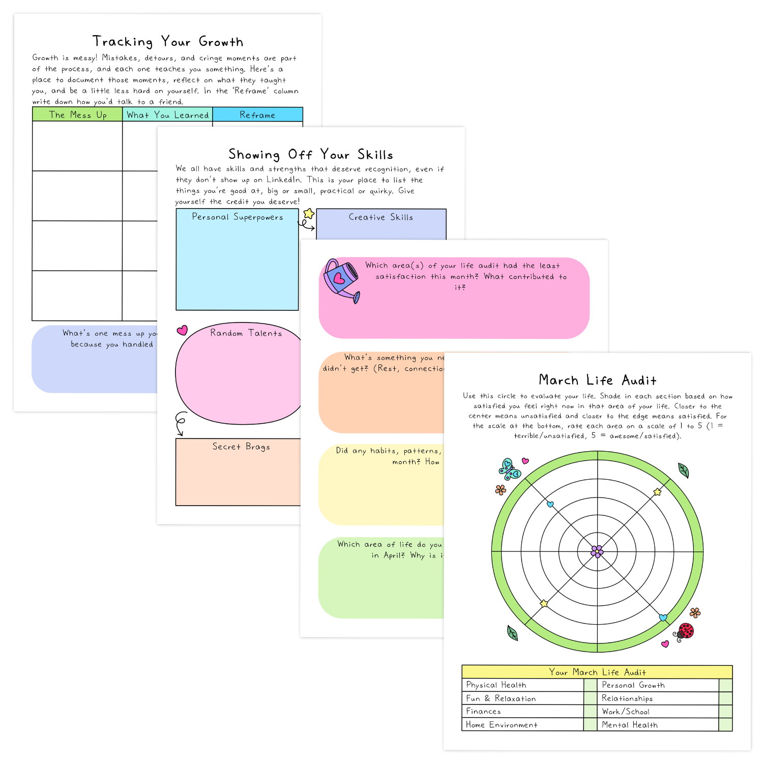 This month, we are doing a deep dive into your personal growth. This workbook helps you acknowledge your strengths, reframe your mistakes, and give yourself a little credit.