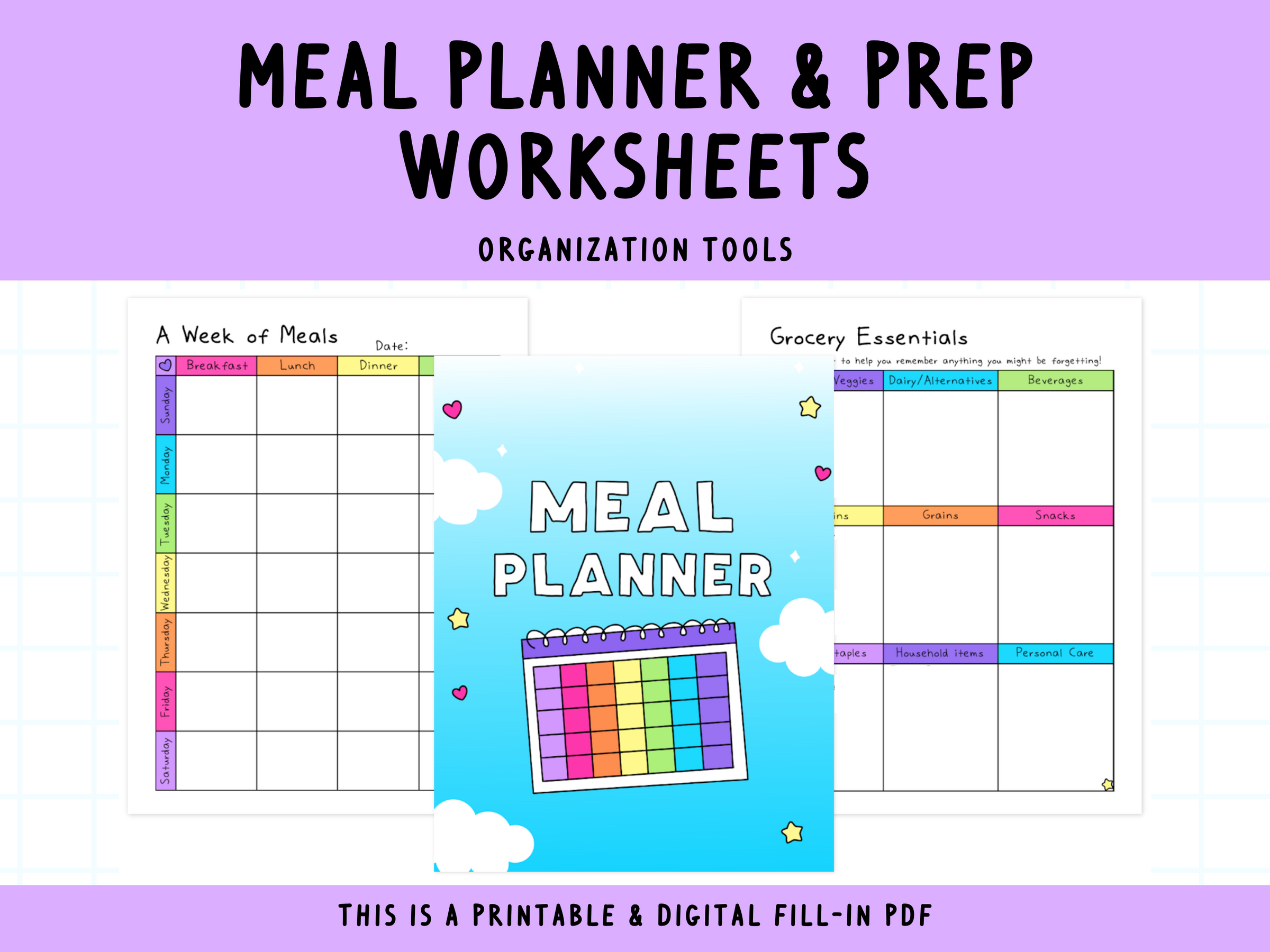 Here's what you get in these 28-page PDF Meal Planning Worksheets