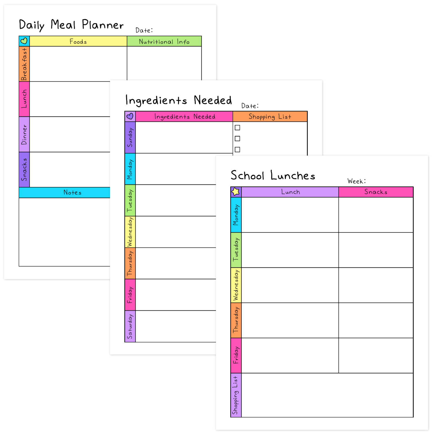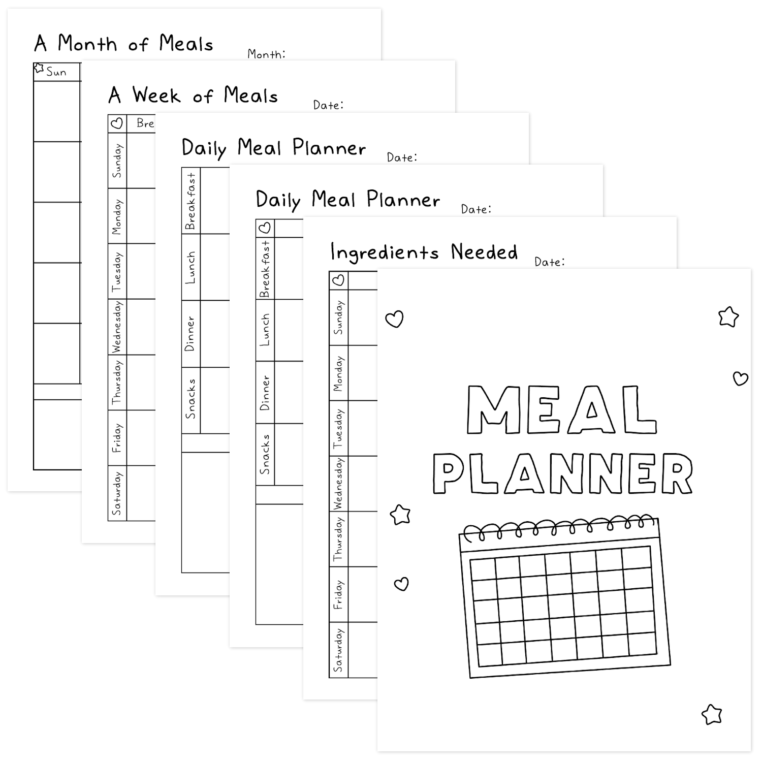 - Daily Meal Planner (Plan out your breakfast, lunch, dinner, and snacks)
