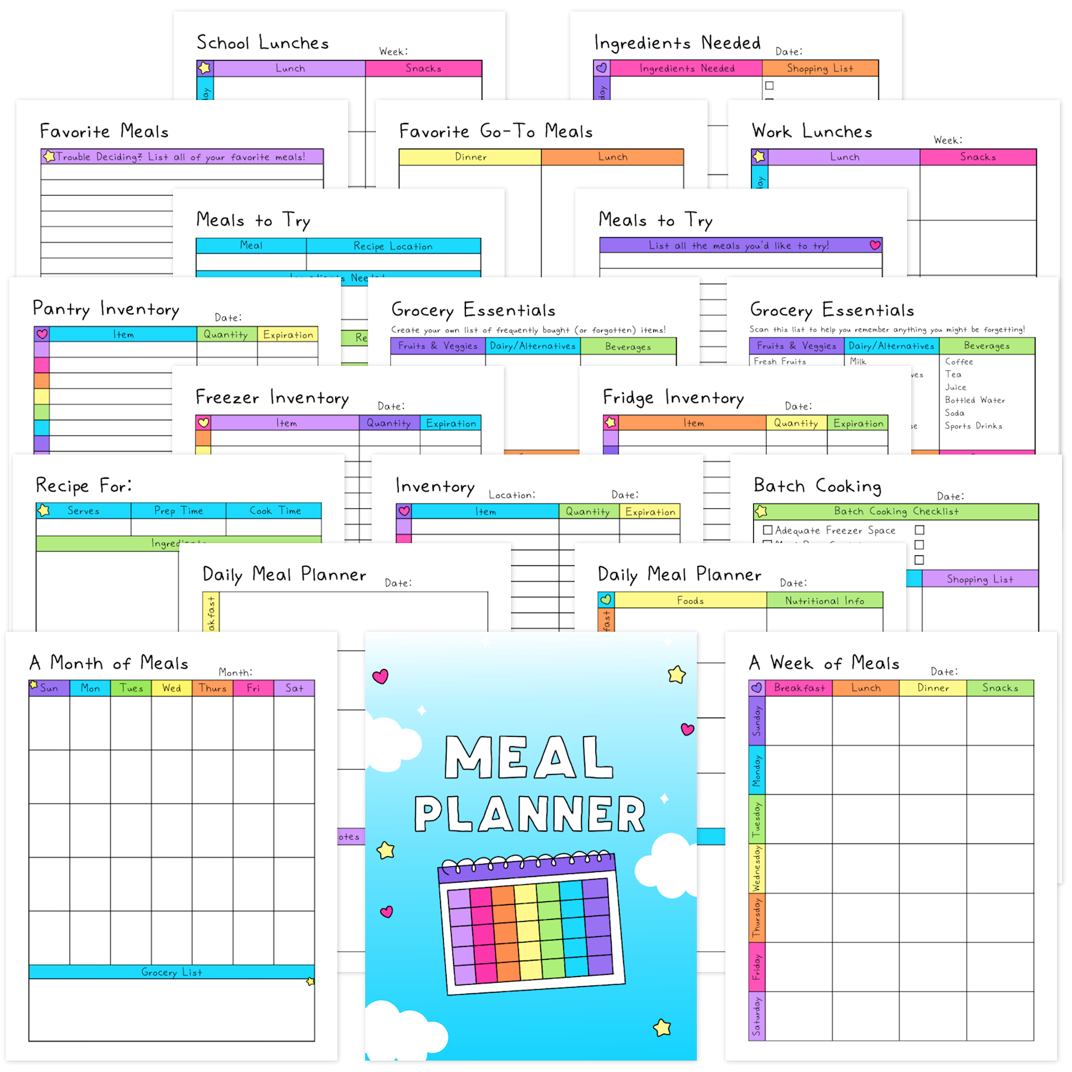 - Fridge, Freezer, and Pantry Inventory sheets to track what you have on hand and when it will expire