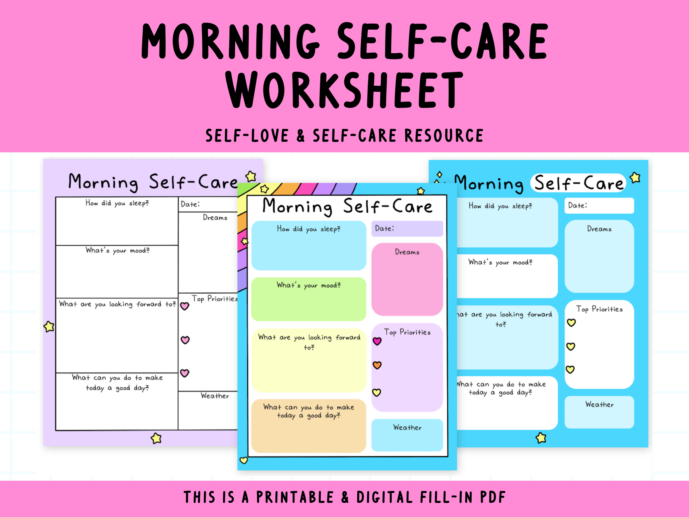 This morning worksheet will help you start your day by taking stock of how you're feeling and what you want to accomplish in your day.