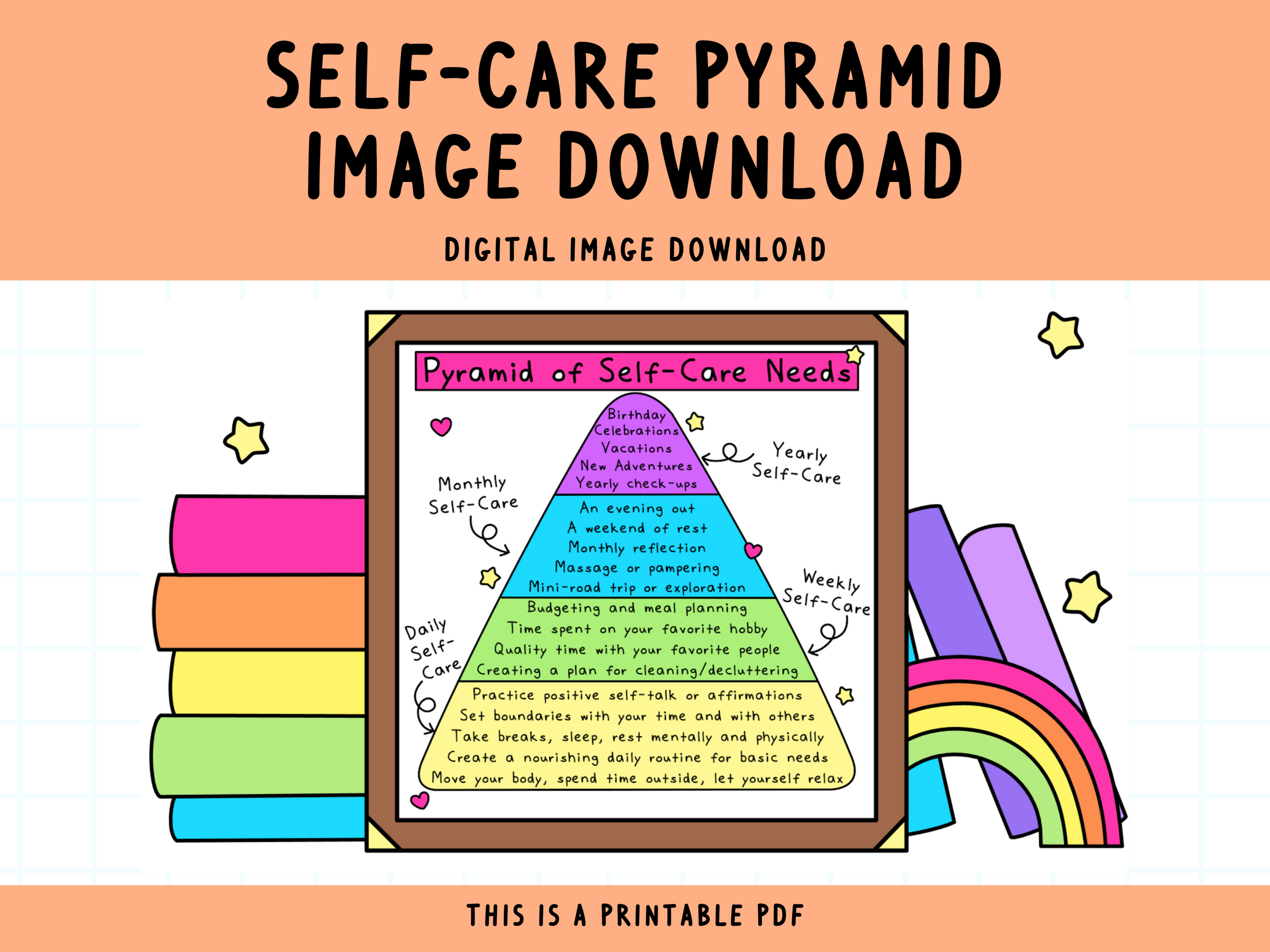 A very general outline of what self-care can look like! The great thing about self-care is that it centers on YOU and because of that, every person's self-care is unique.