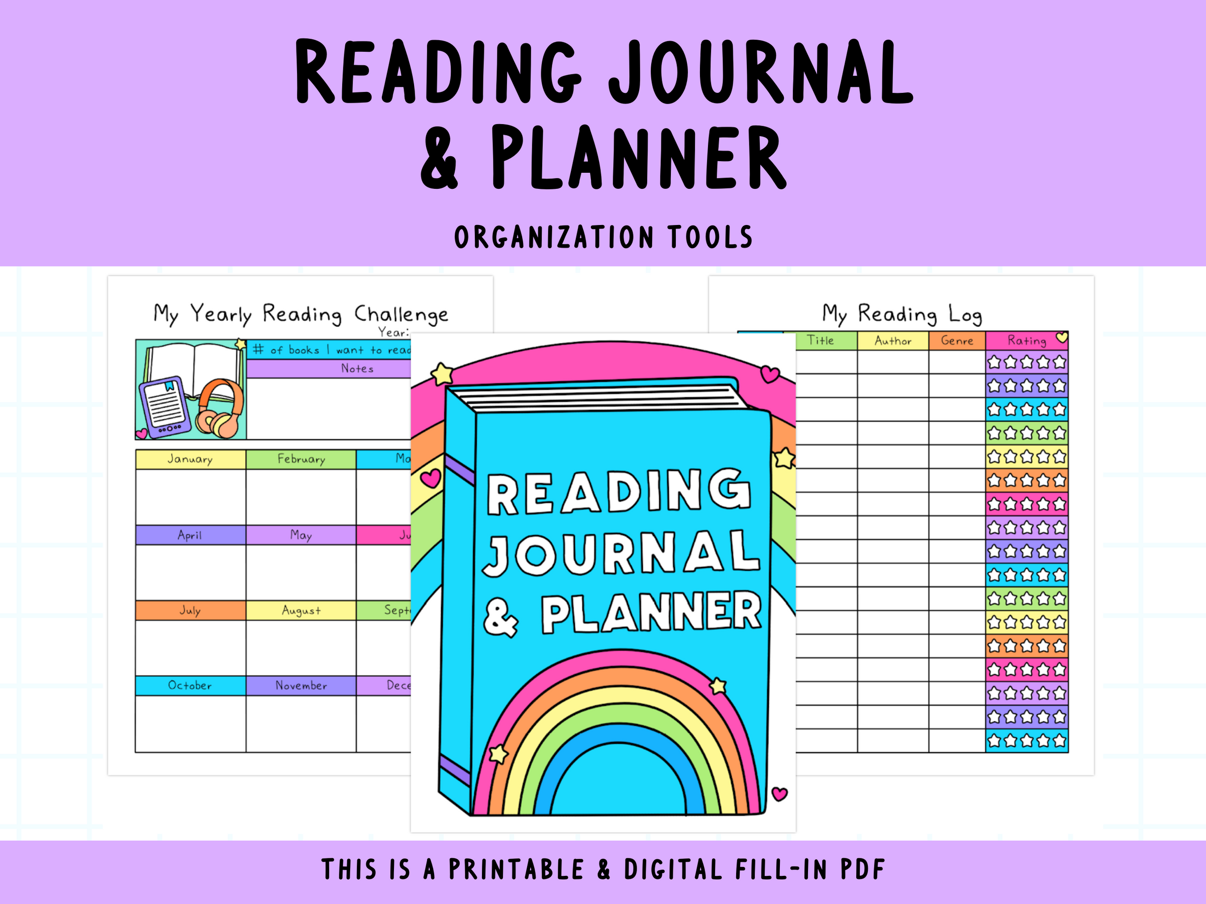 This 40-page PDF can be filled out digitally (using Adobe Reader) or printed out at home! It includes a ton of different ways to track your books, review them, make notes, and track your reading habits!