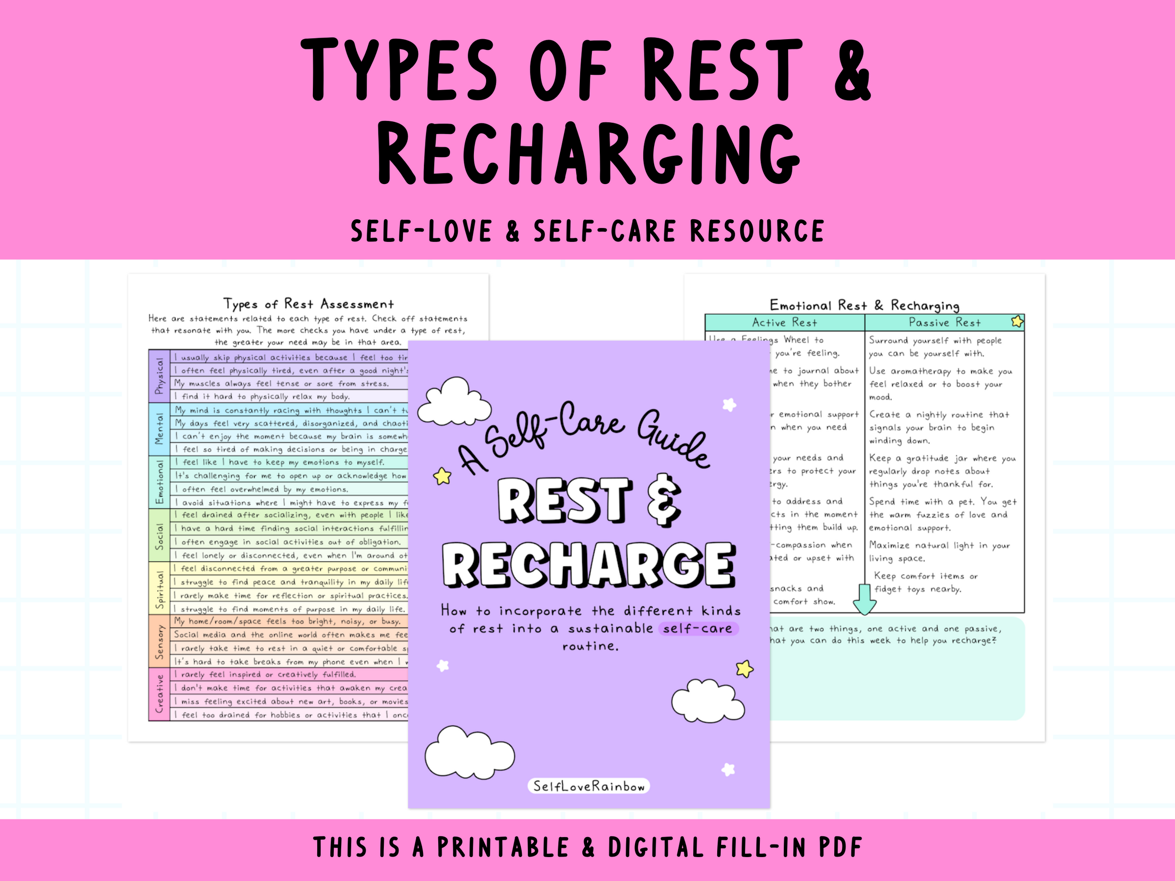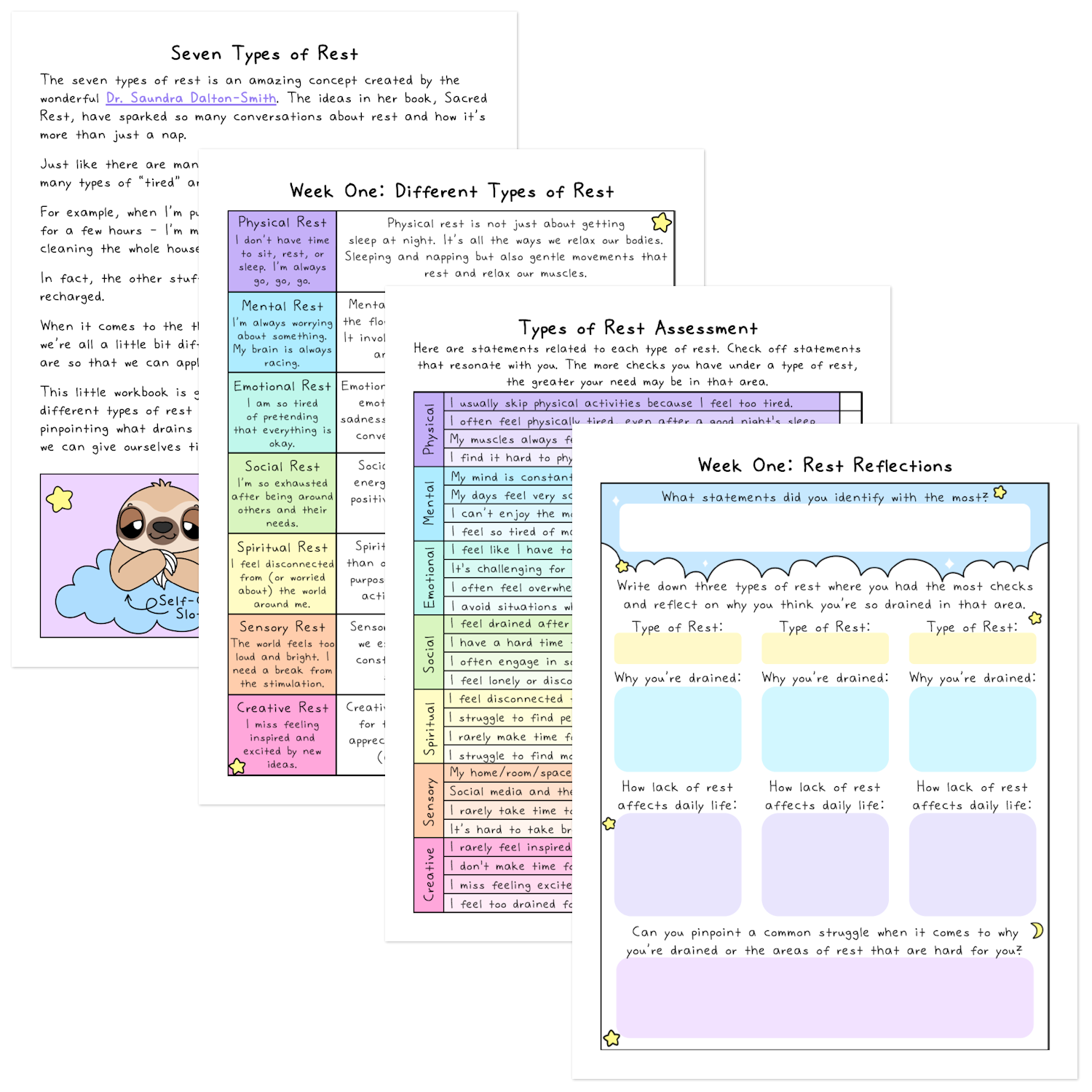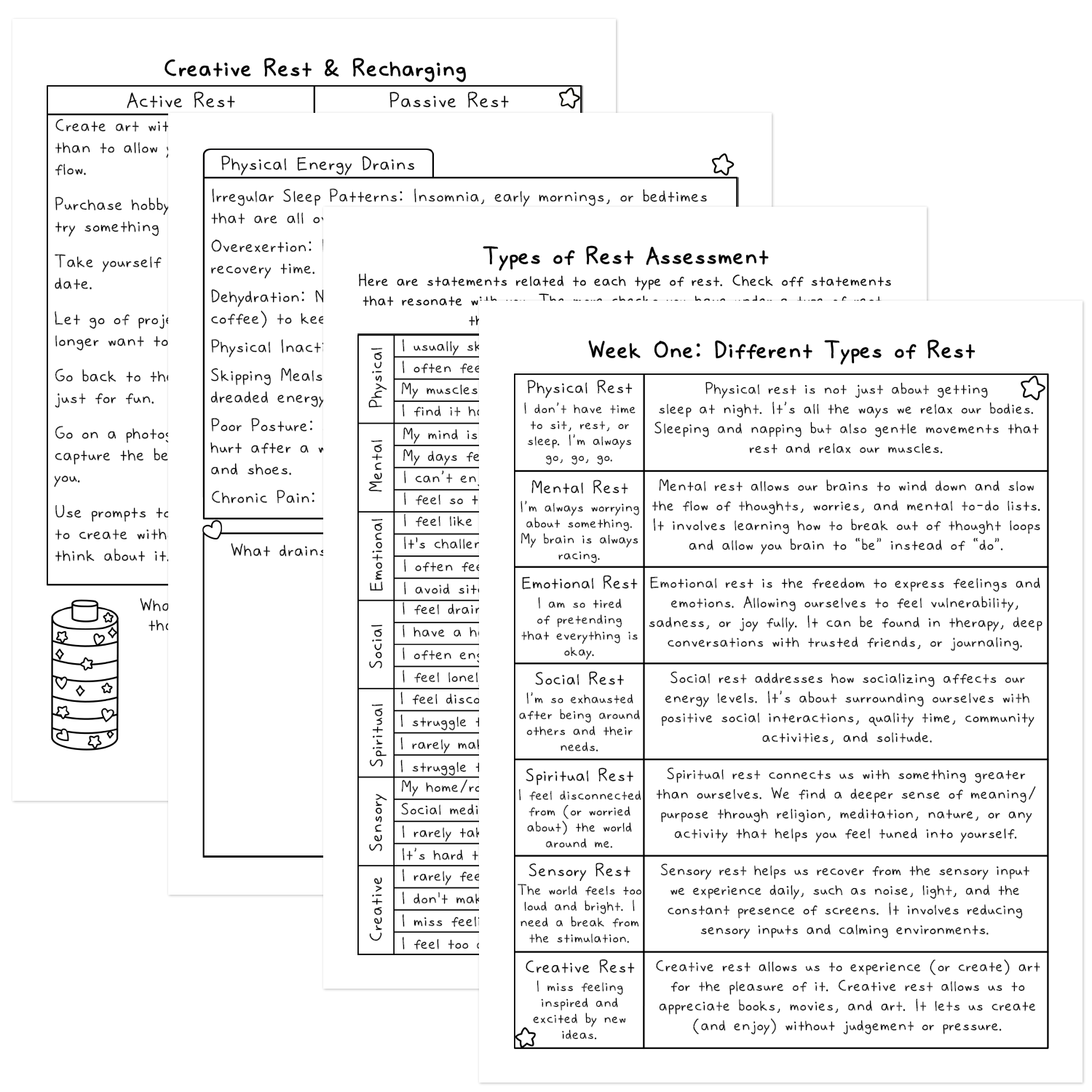 - A quick rundown of the seven types of rest (like physical, mental, emotional, social, spiritual, sensory, and creative rest).