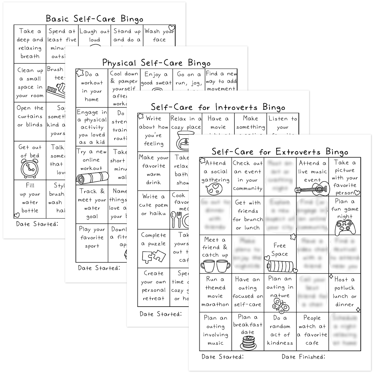 What's inside? Well, you'll find 16 unique bingo sheets, each tailored to different aspects of self-care. From basic self-care to self-care for nature lovers, I've got you covered.