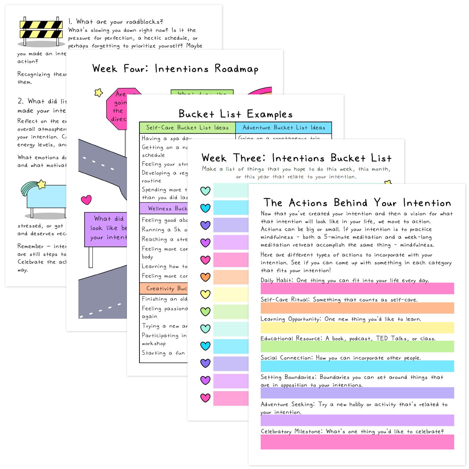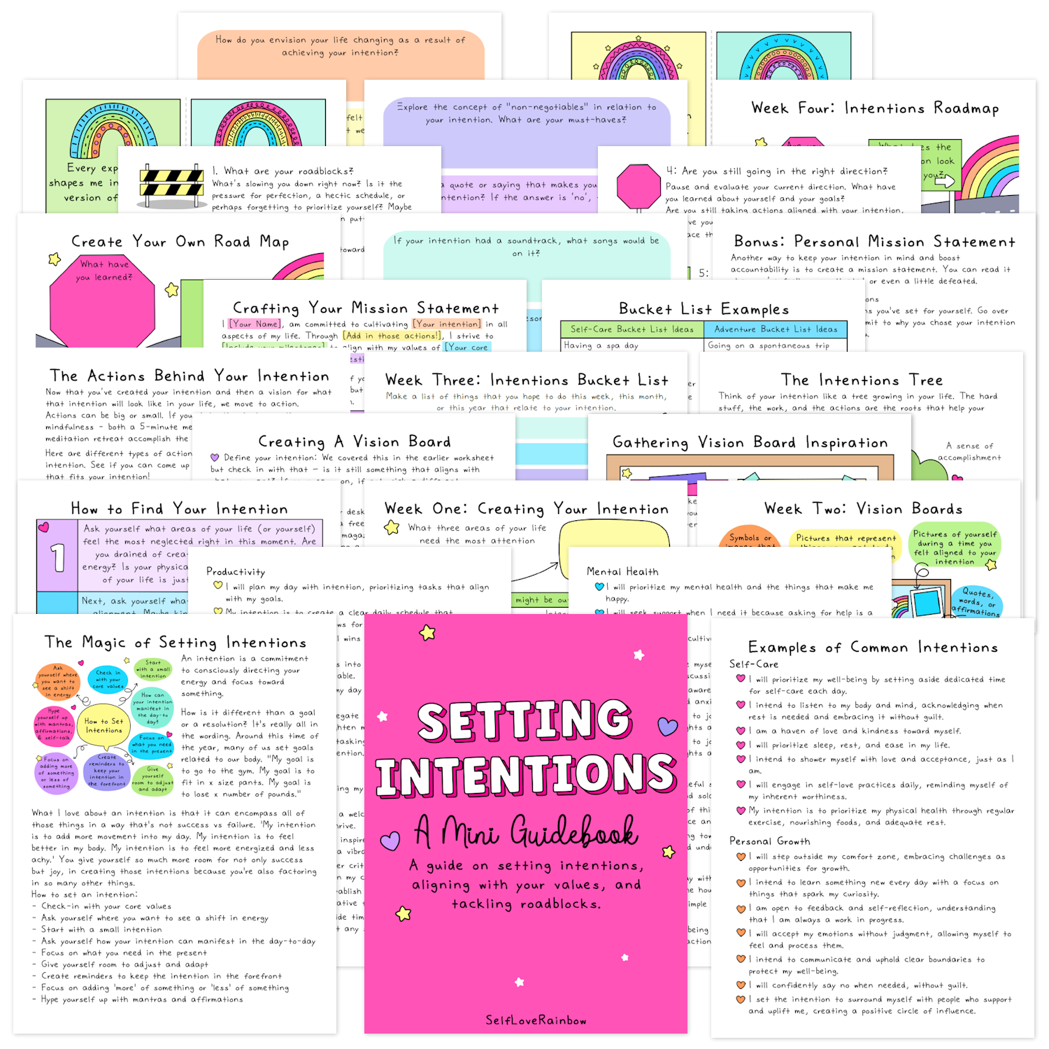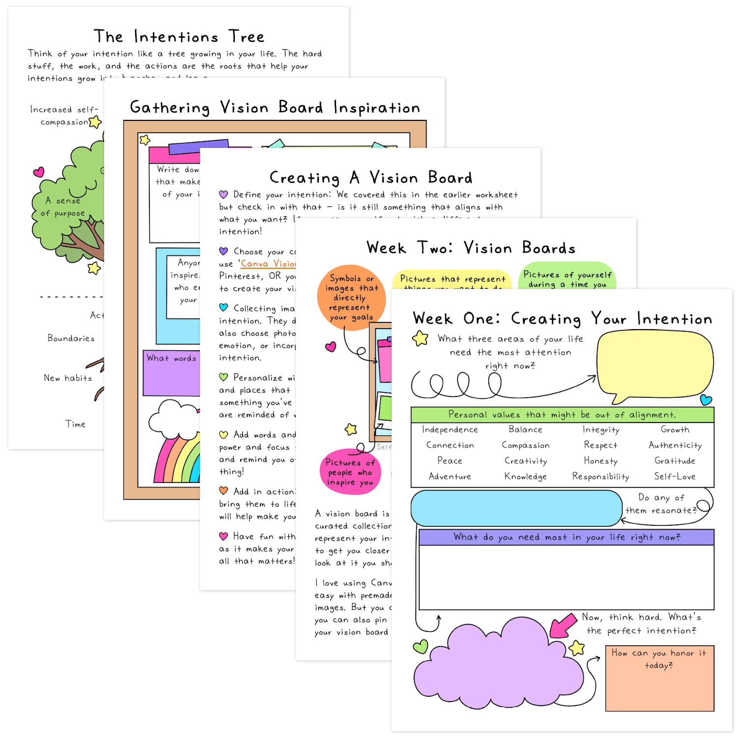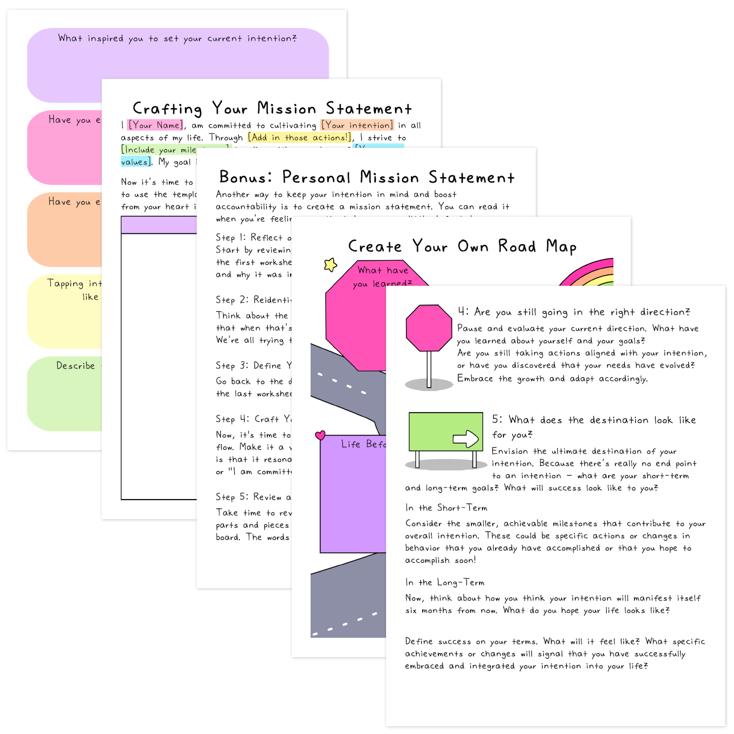 Ready to make your life more meaningful and focused? Let these worksheets be your guide! It's designed to help you understand what truly matters, set goals that have heart, and make those dreams a reality. I love setting intentions because unlike a goal which is often either a success or a failure - an intention can cover everything in between. It's more about the journey then it is the destination.