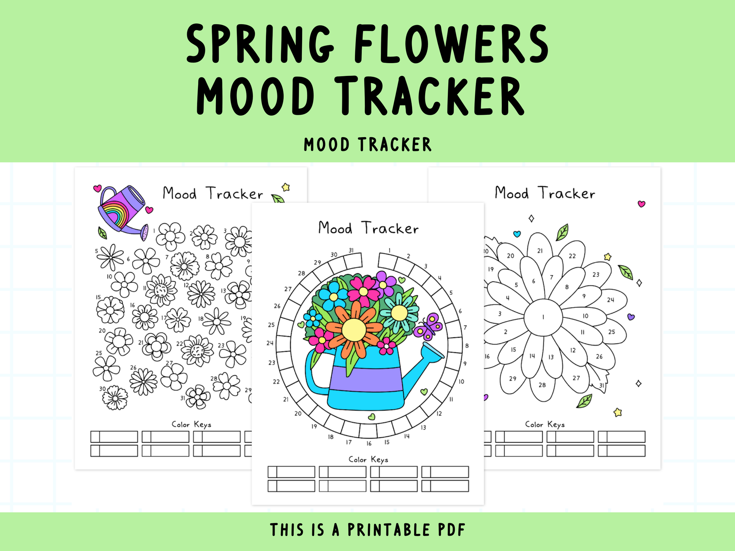 These mood trackers are the perfect (and adorable!) addition to your planner, journal, or mental health journey. Mood trackers work by assigning a color to your mood. Blue may mean "depressed", yellow might mean "anxious", red might mean "angry". On the corresponding day, you color in the box with the color (or colors!) that represent your mood. These are meant to be printed out!