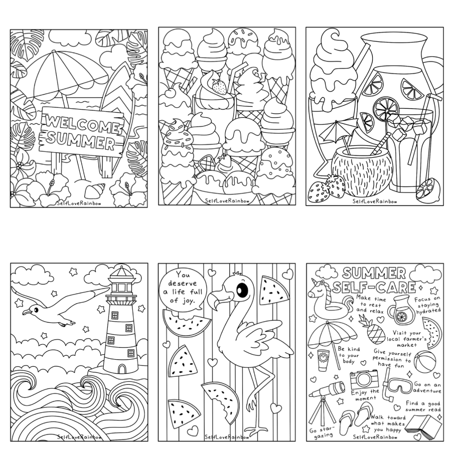 - One PDF with all 6 coloring pages