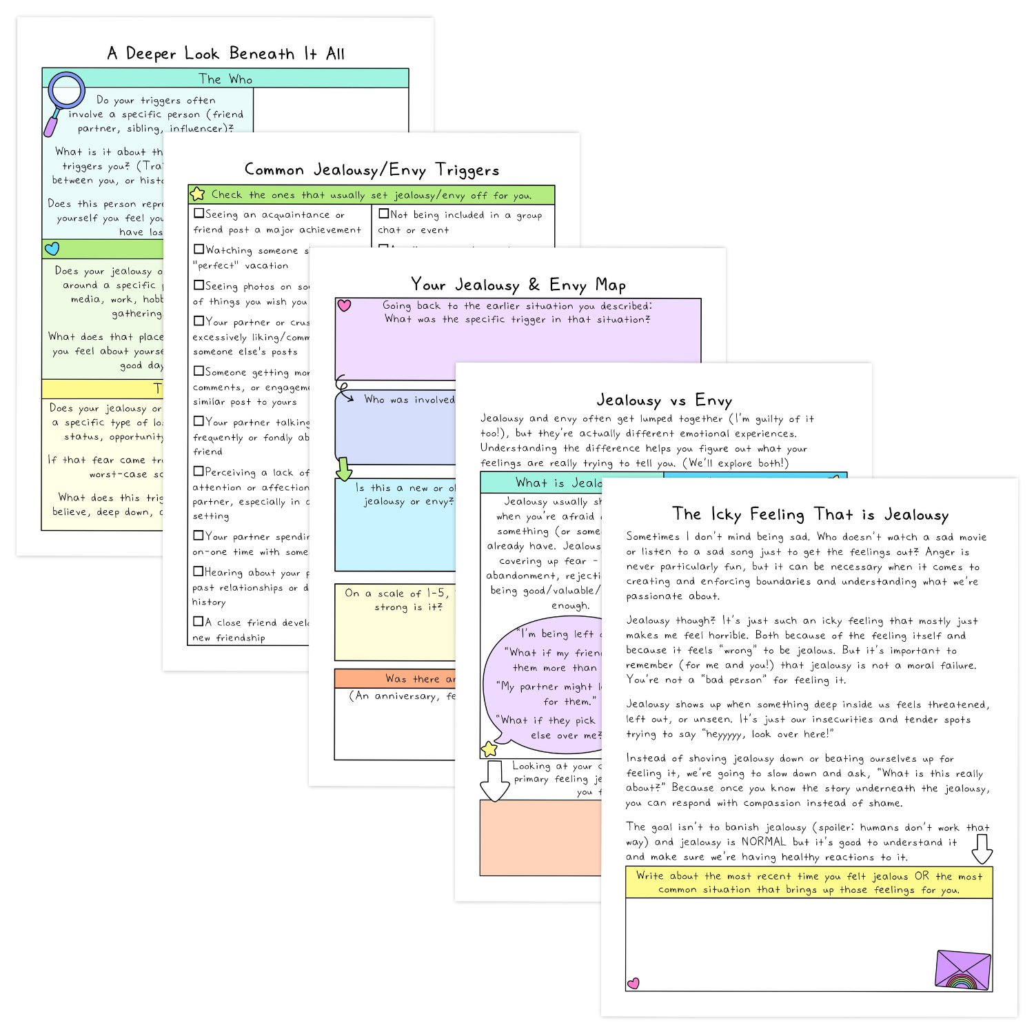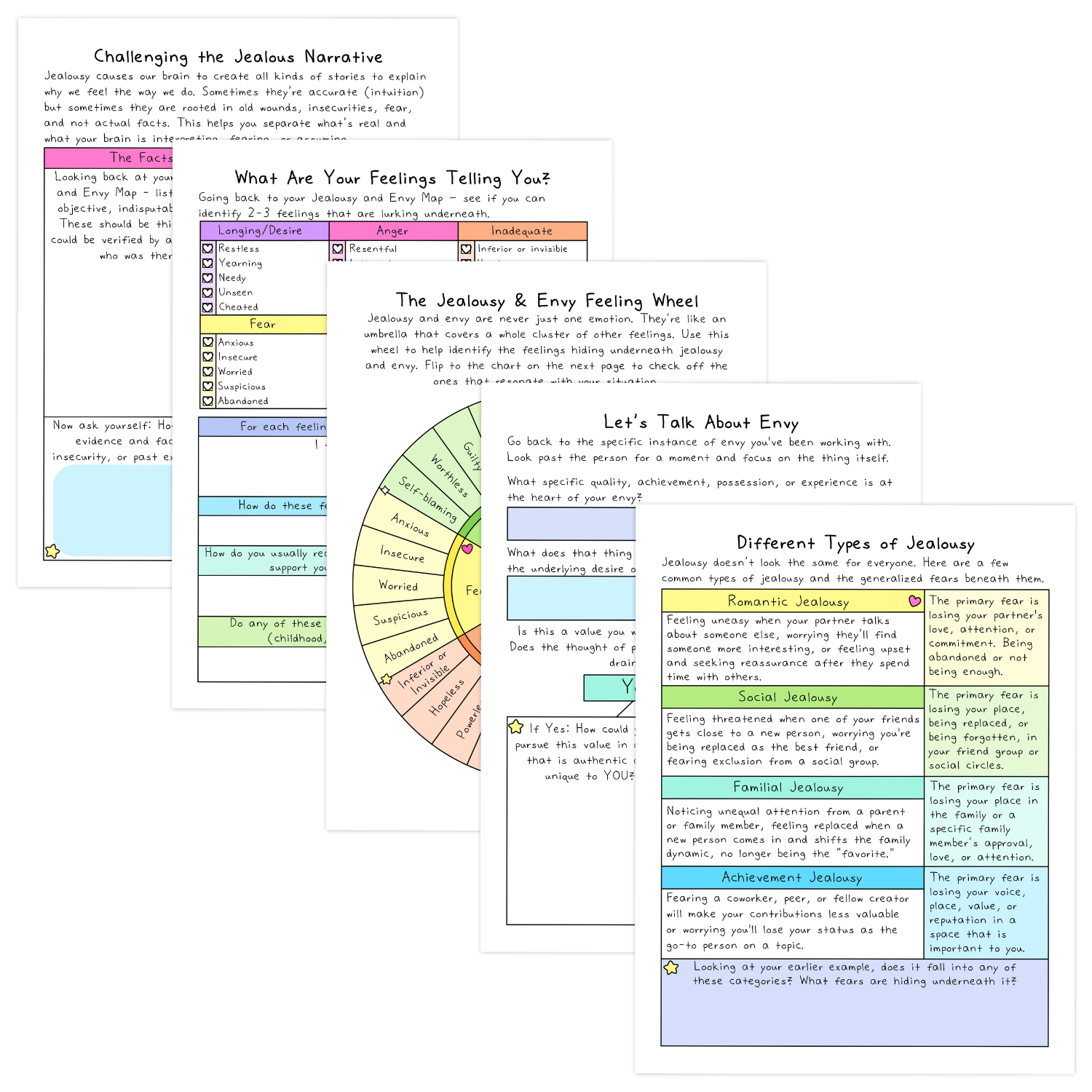The Jealousy & Envy Map: A worksheet to map out a specific situation, from the trigger to your first thoughts.